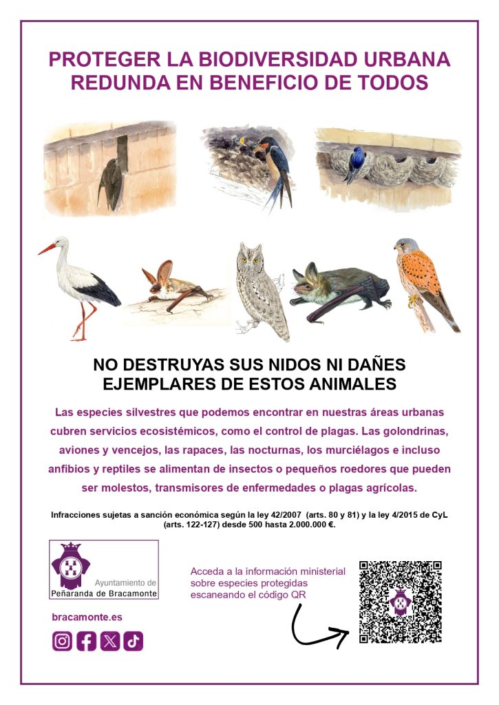 En este sentido, se recuerda que numerosos animales utilizan elementos de los edificios —como aleros, huecos o grietas— para establecer sus nidos o refugios, especialmente durante periodos de reproducción o hibernación. Estos espacios resultan fundamentales para la supervivencia de sus poblaciones.