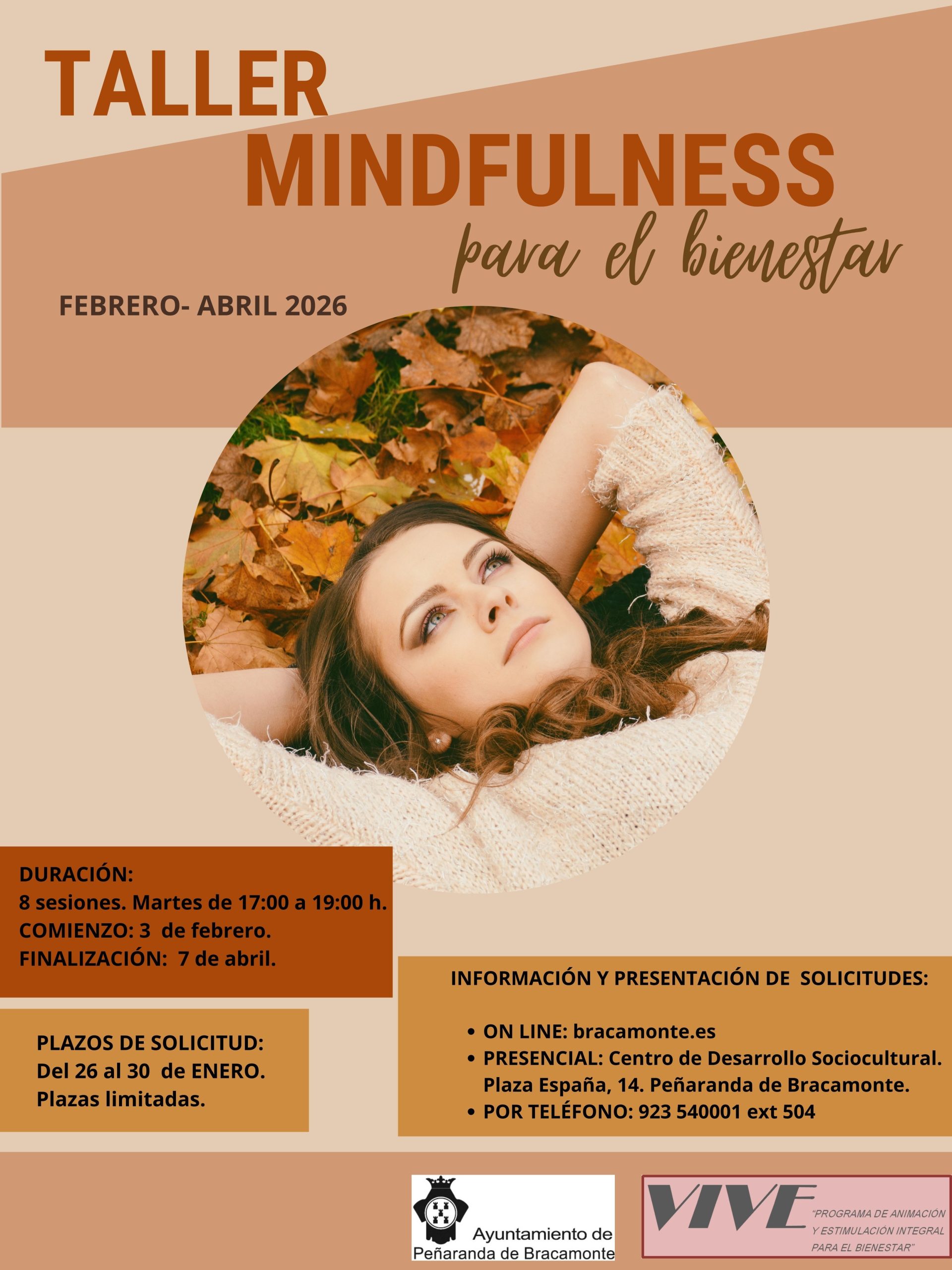 Atendiendo a la actualidad y a las nuevas demandas ciudadanas por el cuidado del bienestar físico, mental y emocional, el Ayuntamiento de Peñaranda de Bracamonte lanza, a través del programa VIVE, un taller de Mindfulness que comenzará el próximo mes de febrero de 2026.