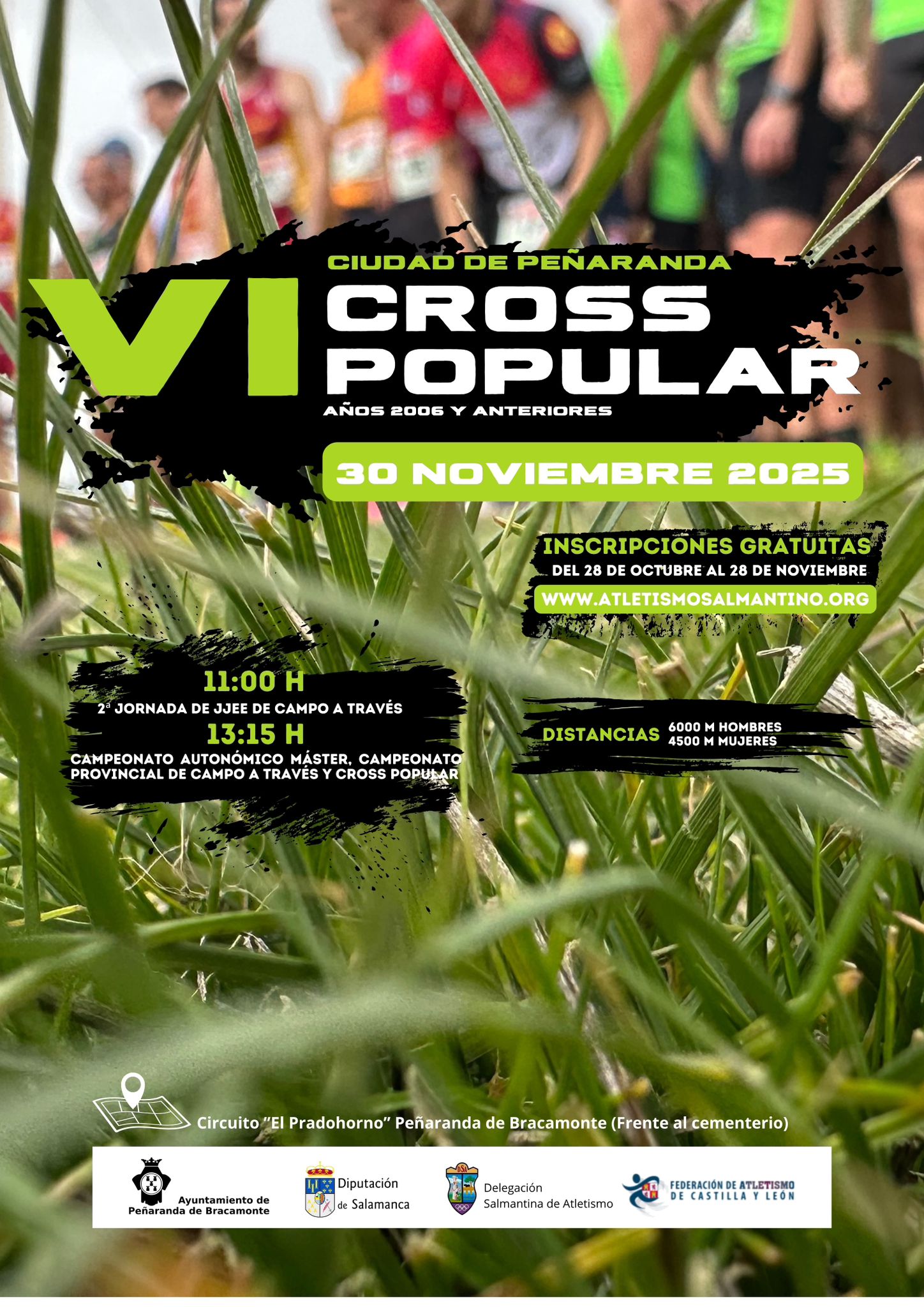 Las inscripciones para el VI Cross Popular están disponibles desde hoy, martes, a través de la web www.atletismosalmantino.org, y son gratuitas. Las inscripciones de las pruebas federadas se tramitarán a través de las páginas de la Delegación Salmantina de Atletismo y de la Federación de Atletismo de Castilla y León, mientras que la jornada de Juegos Escolares se coordina con la Diputación de Salamanca.