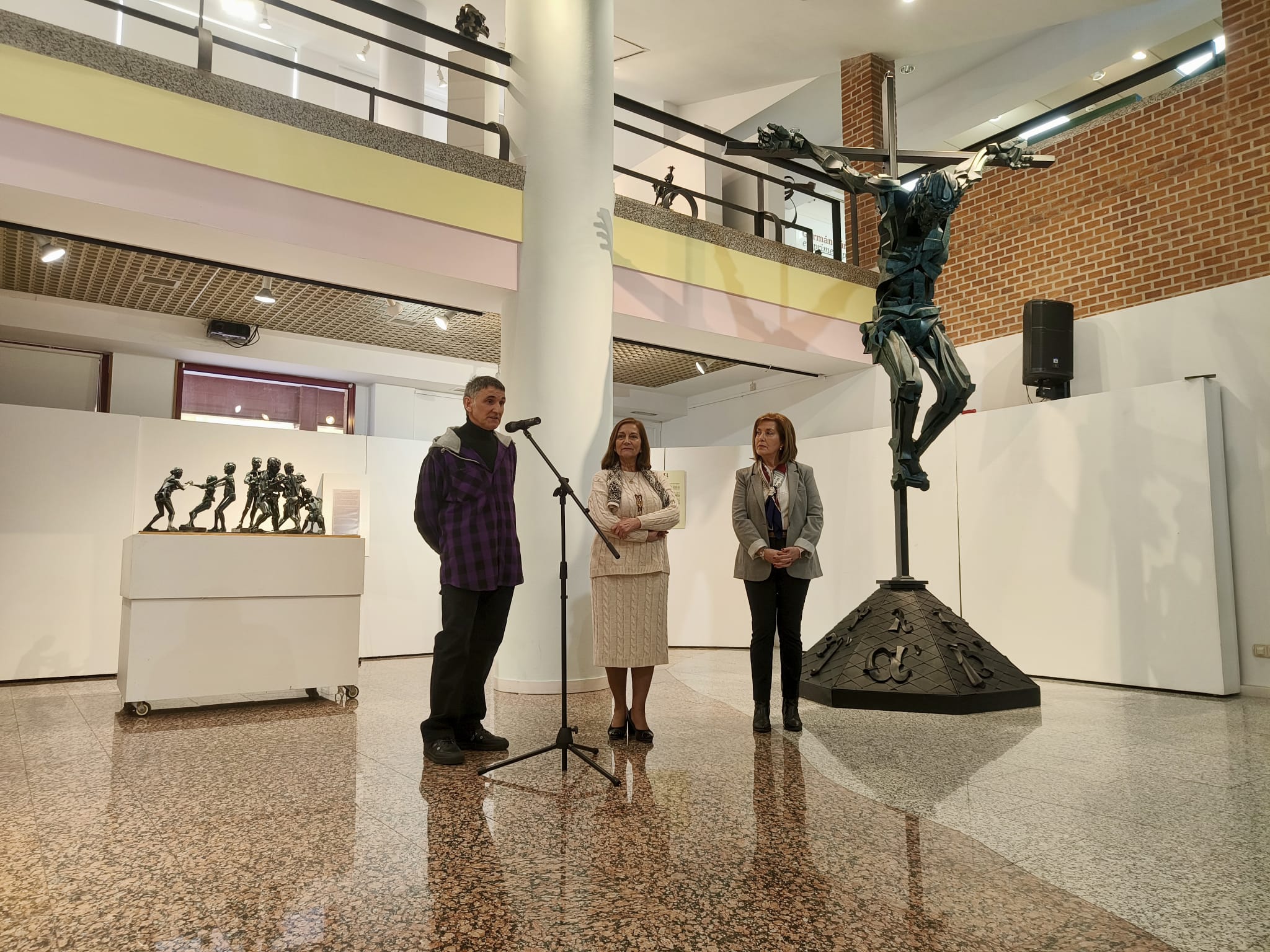 Por su parte, el escultor Santos Ramos, natural de Nava de Sotrobal, ha compartido los detalles de su proceso creativo, definido por la experimentación técnica y la influencia de las vanguardias cubistas. «Krakel» —término derivado del craquelado artístico— presenta una serie de figuras humanas y animales donde la naturaleza se sintetiza a través de volúmenes geométricos, planos y líneas puras. El autor ha destacado la complejidad de piezas de gran formato como el «Cristo», modelado directamente a partir de maquetas a escala hasta alcanzar su fisionomía final en resina de poliéster.