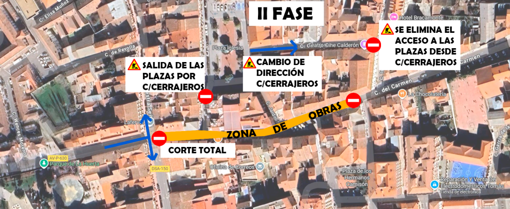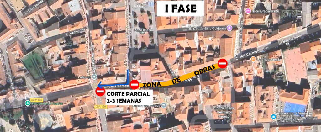 - Fase 2 (hasta la finalización de la obra): corte total de la calle del Carmen.