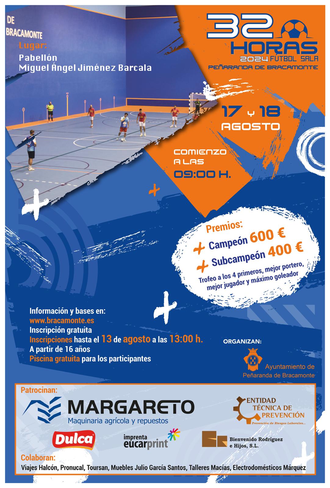 La celebración del Torneo de las 32 Horas, tendrá lugar los días 17 y 18 de agosto en el Pabellón Miguel Ángel Jiménez Barcala. Este evento deportivo comenzará a las 9:00 horas del 17 de agosto y terminará el 18 de agosto con la final a las 20:00 horas.
